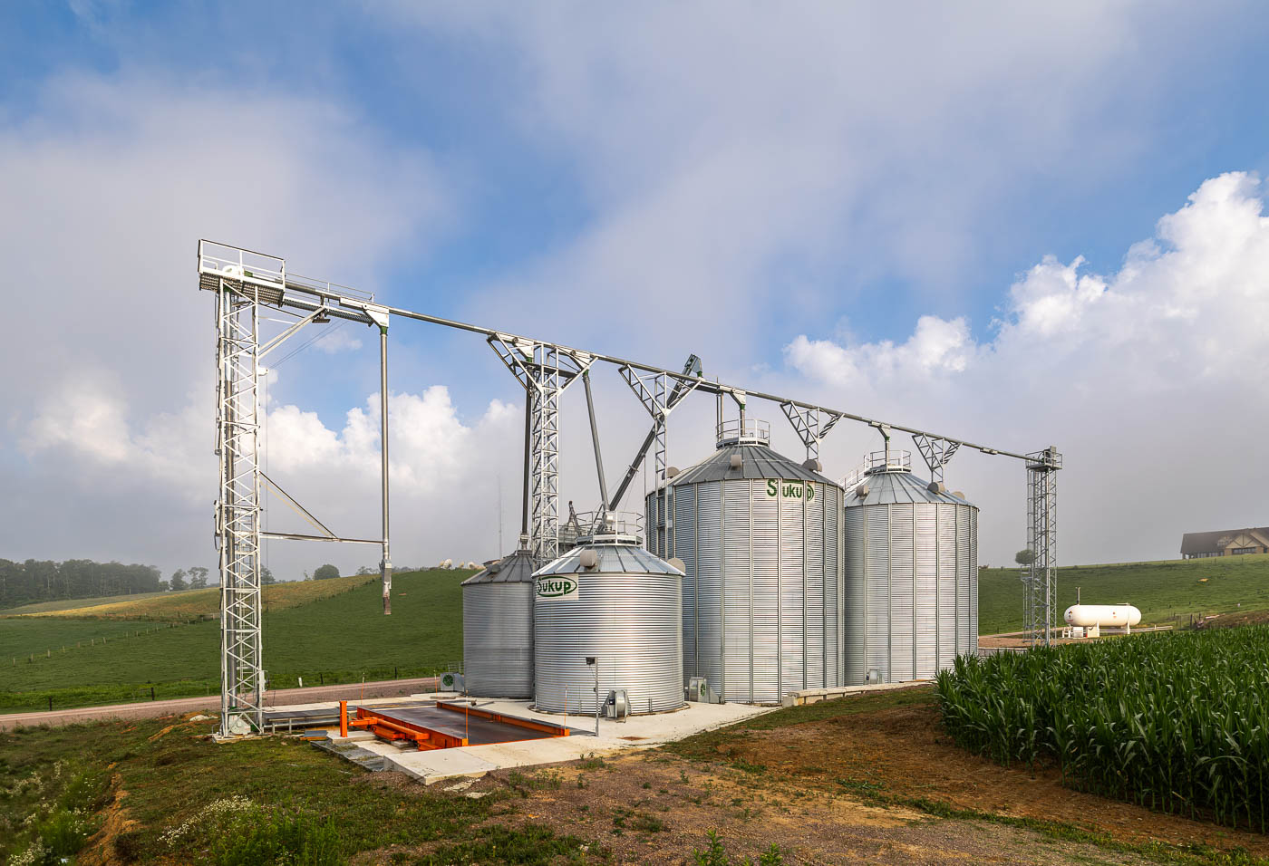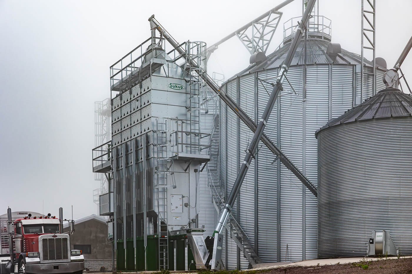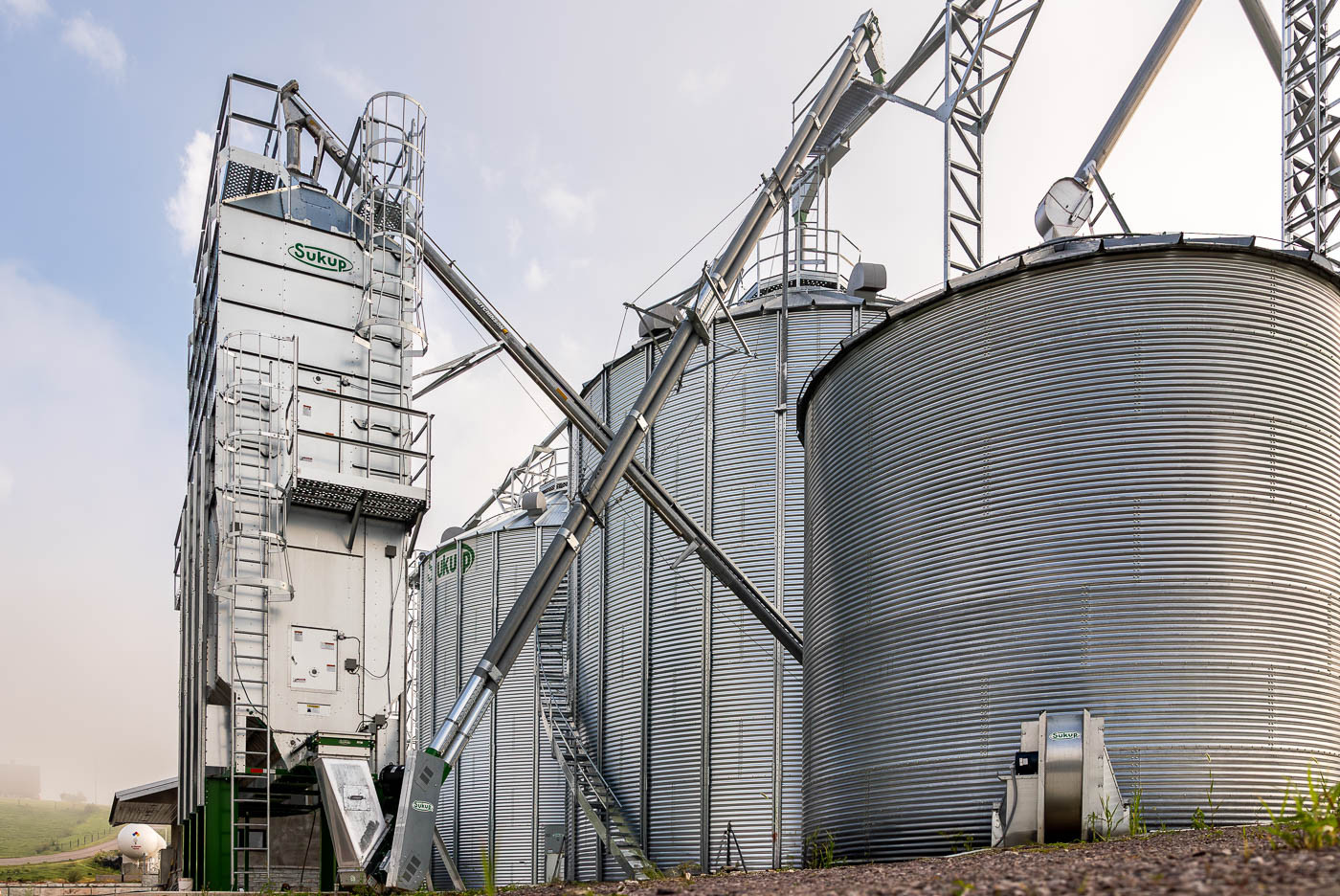 They installed Sukup Farm-Stiffened Bins, a 10" Loop System, a 1606 Double Expandable Mixed Flow Dryer, and an 8" Double Run Conveyor to create a smooth, flexible operation.