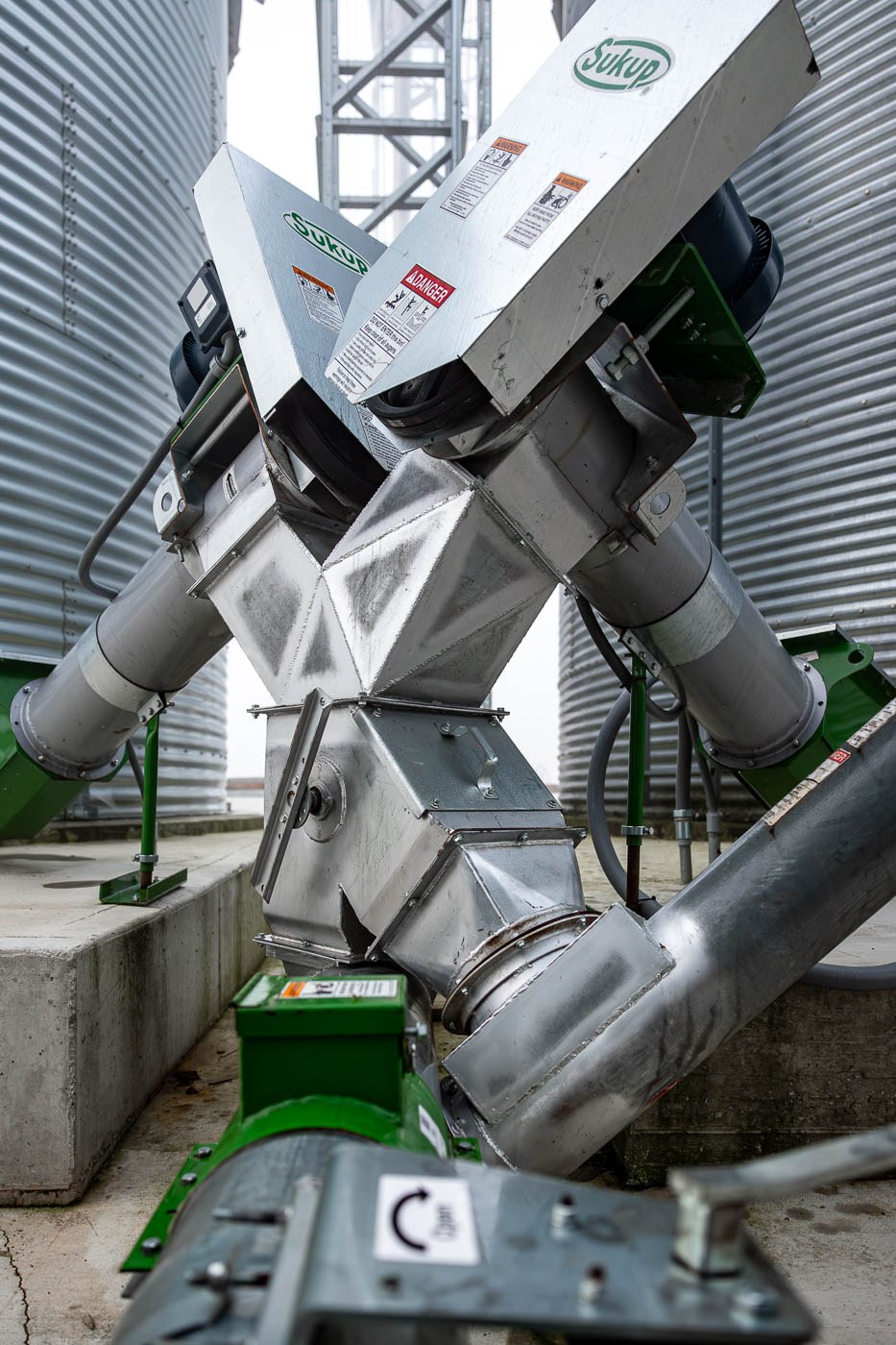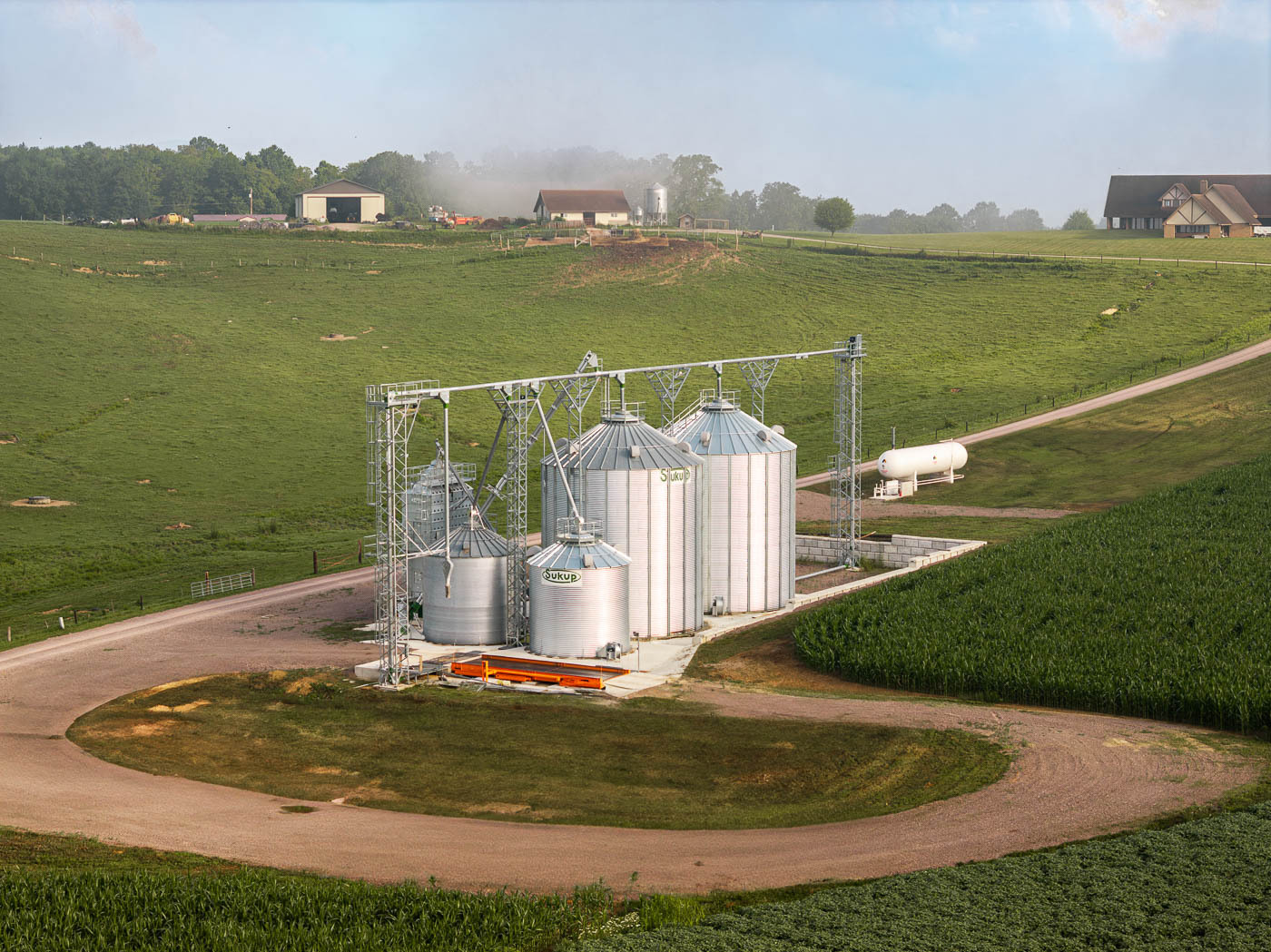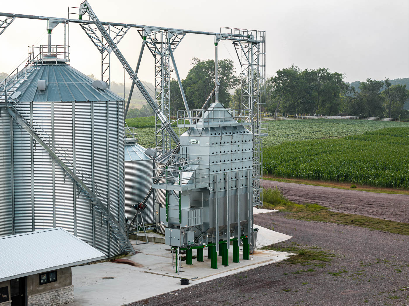 They installed Sukup Farm-Stiffened Bins, a 10" Loop System, a 1606 Double Expandable Mixed Flow Dryer, and an 8" Double Run Conveyor to create a smooth, flexible operation.